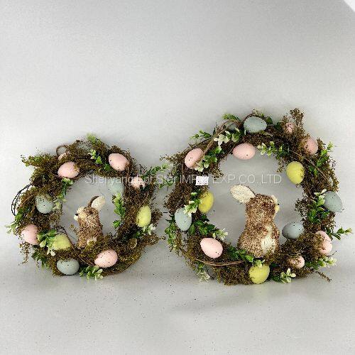 Shenyang For Star Wholesale Handmade Craft Home Decoration Door Easter Egg Wreath With Bunny