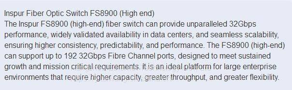 The Inspur FS8900 (high-end) fiber switch can provide unparalleled 32Gbps performance, widely validated availability in data centers, and seamless scalability, ensuring higher consistency, predictability, and performance. The FS8900 (high-end) can support up to 192 32Gbps Fibre Channel ports, designed to meet sustained growth and mission critical requirements. It is an ideal platform for large enterprise environments that require higher capacity, greater throughput, and greater flexibility.