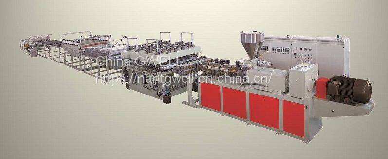 The production line of PVC skin foam, semi-skin foam and co-extrusion core layer foam plate is composed of special conical twin screw extruder, plate mold, calibration unit (three rollers) and auxiliary machine. The equipment has the characteristics of large output, stable extrusion, high foaming rate, smooth and wear-resistant surface. By printing, laminating and hot pressing equipment, it can also produce all kinds of imitation wood products, which are widely used. GWELL offers a full range of formulations and processes.