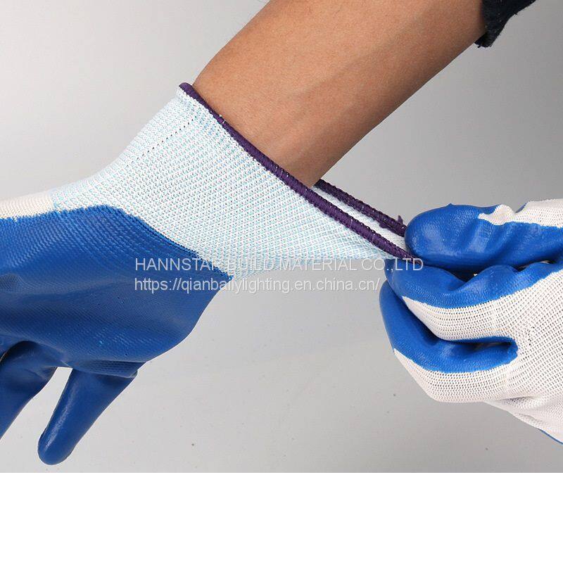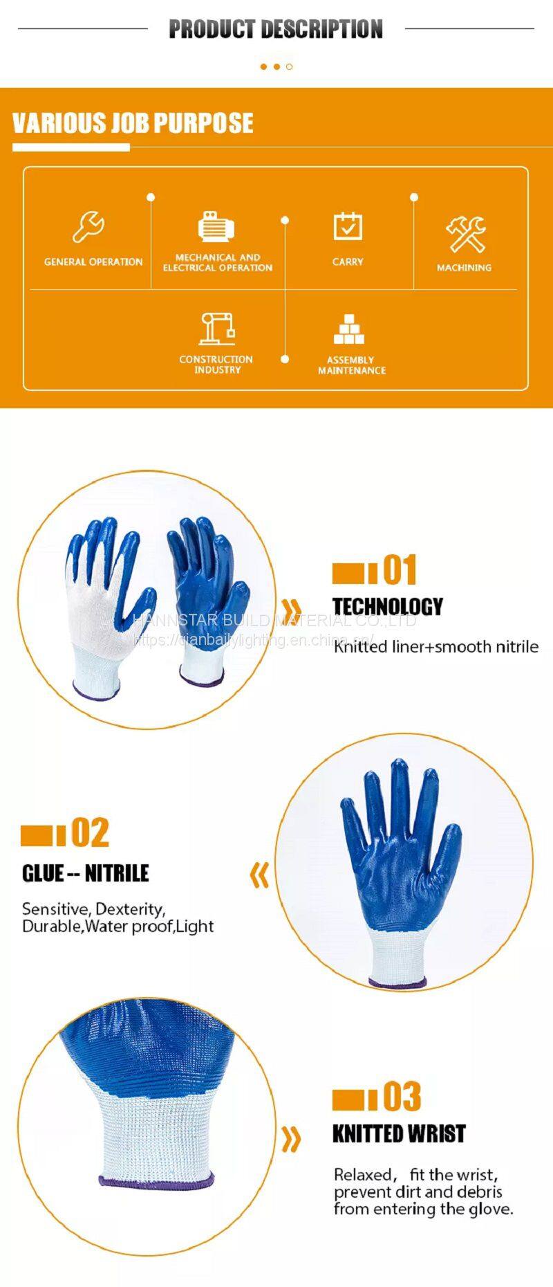 Home > Products > Safety protective products > White Nylon Work Gloves With Blue Nitrile Coated