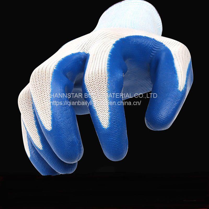- Blue&white Polyester Thread 13 Gauge Knitted Deep Blue Foamed Wrinkled Latex Palm Coated Safety Work Gloves