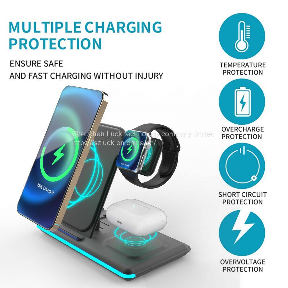 Fast 3 in 1 Wireless Charger Stand Dock Foldable Magnetic Quick 23W Support OEM