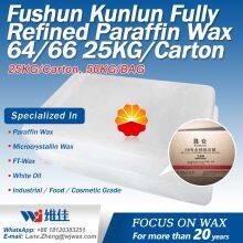 Fushun Kunlun Fully Refined Paraffin Wax 64/66 25KG/Carton Packaging