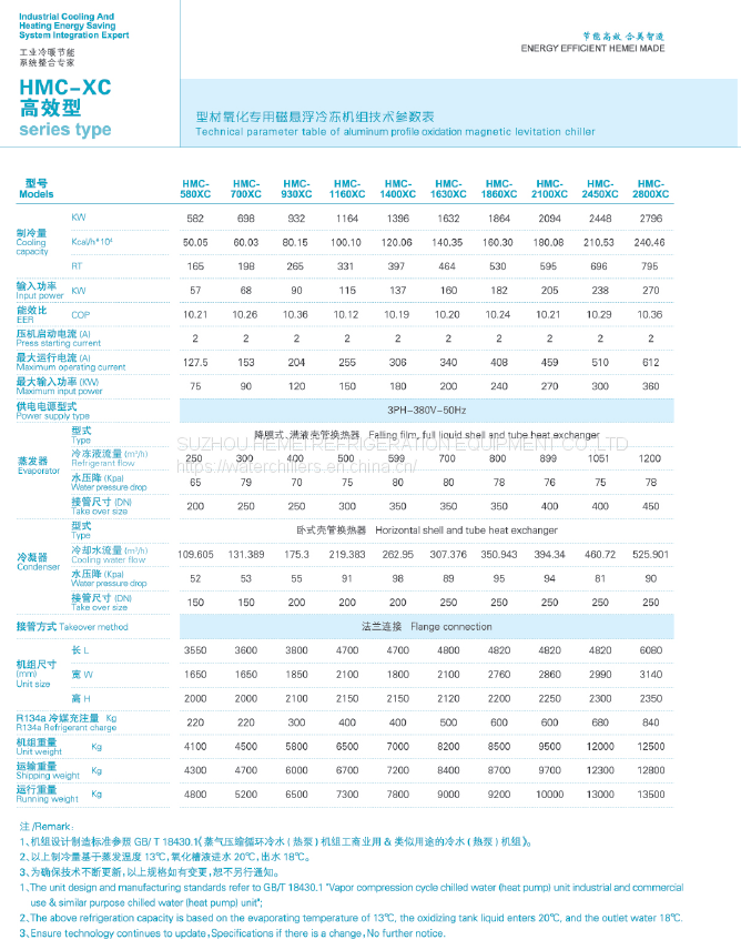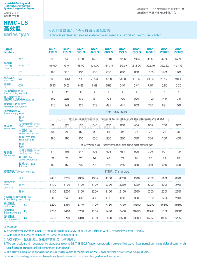 Magnetic Levitation Frequency Conversion Centrifugal Refrigerating Unit HMC-XC and HMC-LS Industrial Chiller