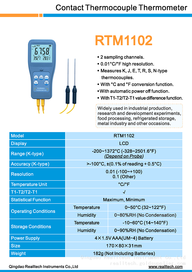 RTM1102 High-accuracy 2 Channels Temperature Meter With 0.01 Resolution