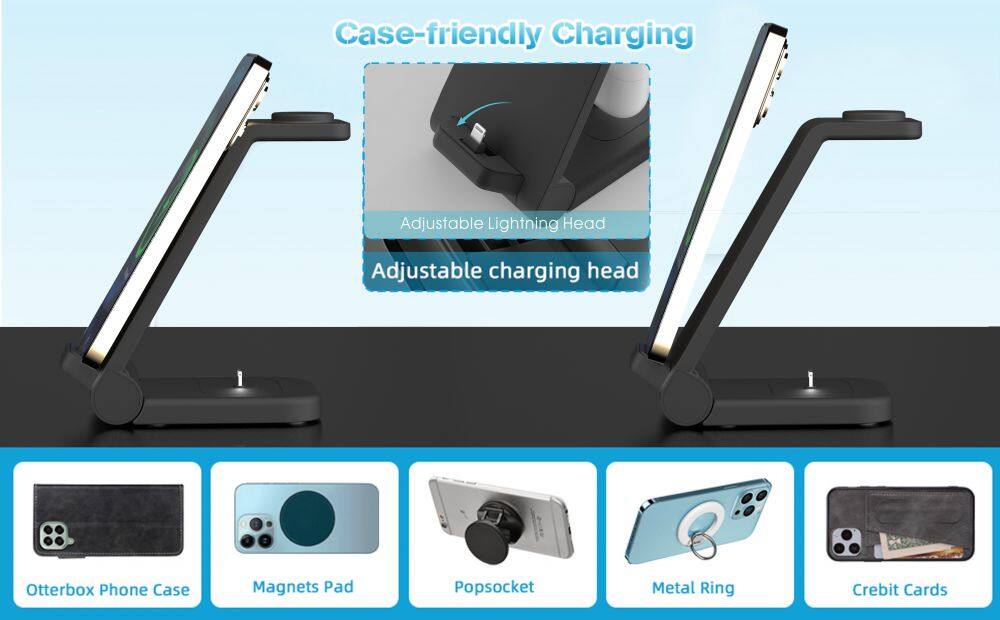 3. Case Friendly Charging:The charger dock is specially designed for charging with case, which is a favorite for Otter phone case lovers. It's suitable for mobile phone cases of different thickness and also saves you the trouble of removing the case while charging.
