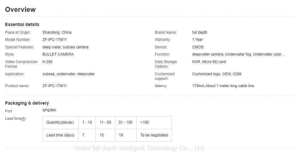 ZF-IPC-02B11Fulldepth ZF-IPC-02B11 Underwater IP Camera