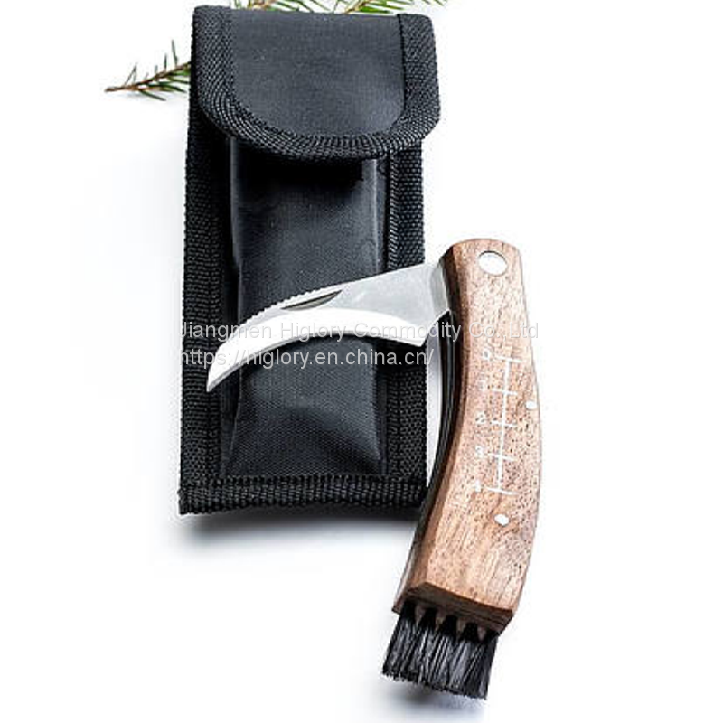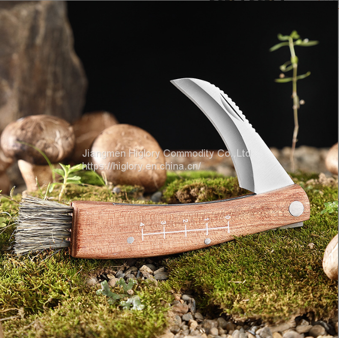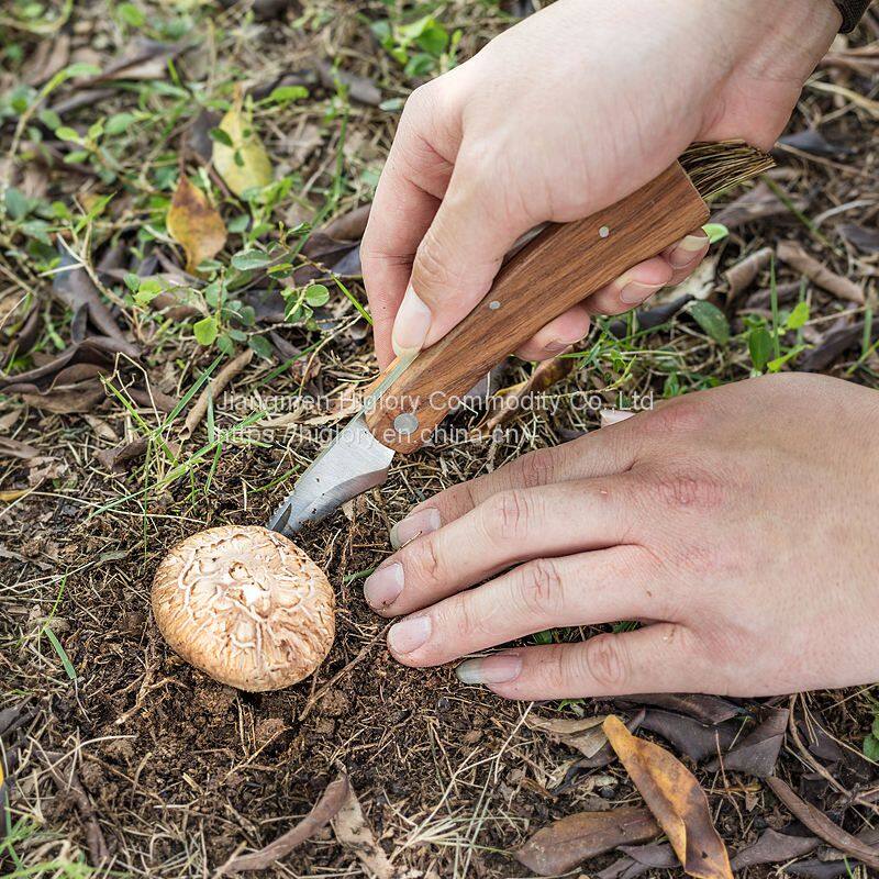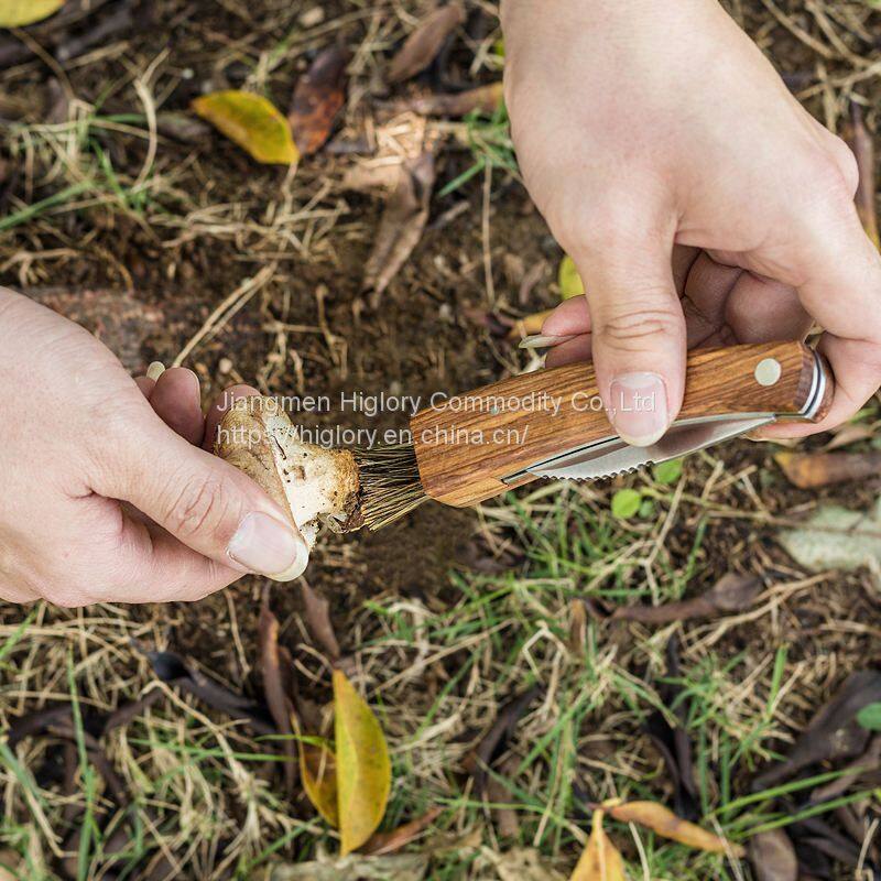 Good Quality Outdoor Mushroom Knife Camping Hunting Knife Multi Tools Wood Handle Carving Knife With Brush