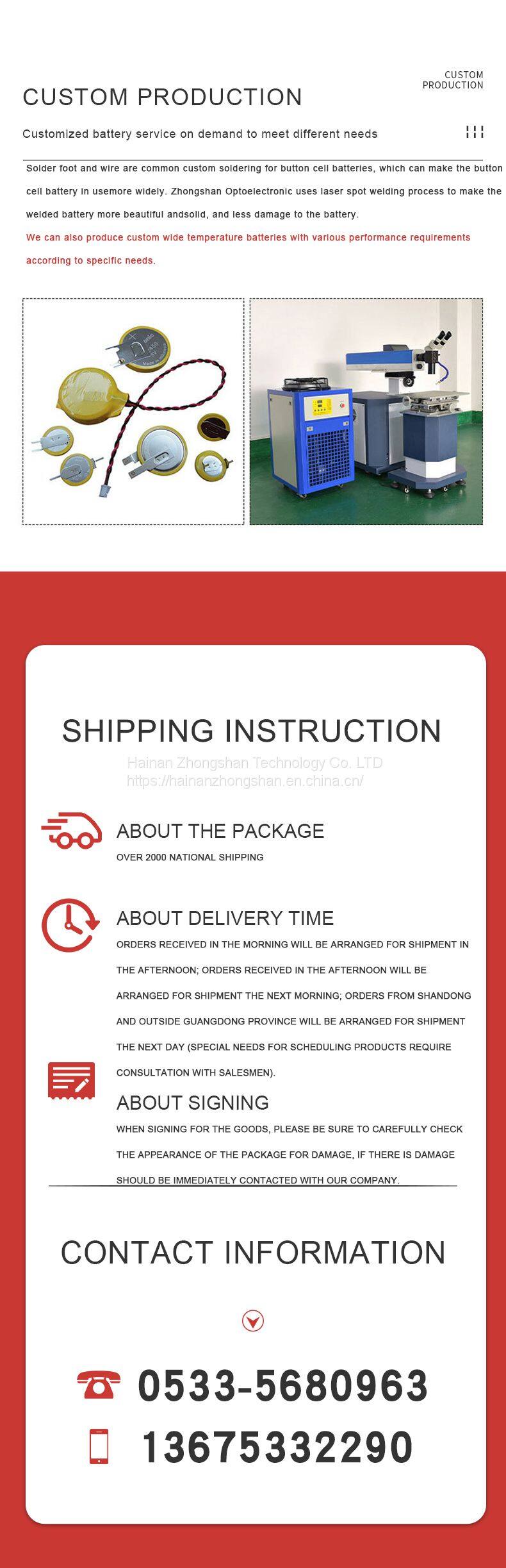 3V lithium sub battery For Tire Pressure Alarm