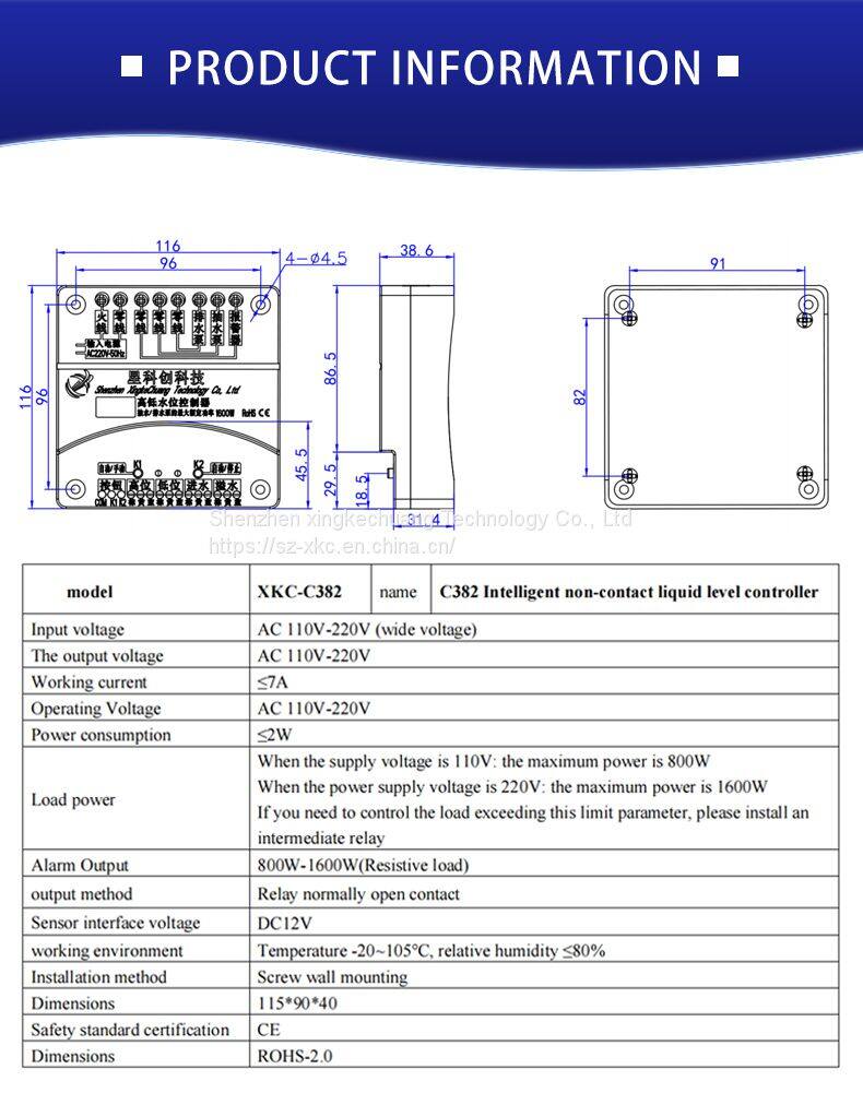 XKC-C382 AC110-250V Automatic Filling & Drainage Water Level Controllers and Sensors, Anti-overflow Anti-empty Pumping