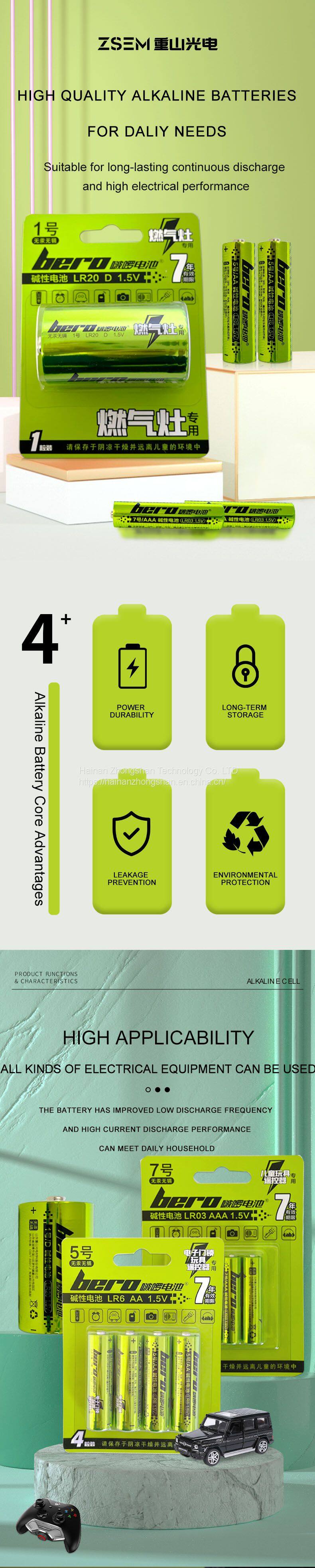 ZSEM 1.5V alkaline batteries are more suitable for long-lasting continuous discharge and high-performance power consumption equipment because of their unique internal component structure, coupled with better battery materials, improved power capacity and electrical performance, and the same model of ZSEM 1.5V alkaline cell capacity and discharge time, Alkaline battery capacity and discharge time are 4-7 times that of ordinary batteries, and the gap in power discharge performance at high and low temperature is even wider.