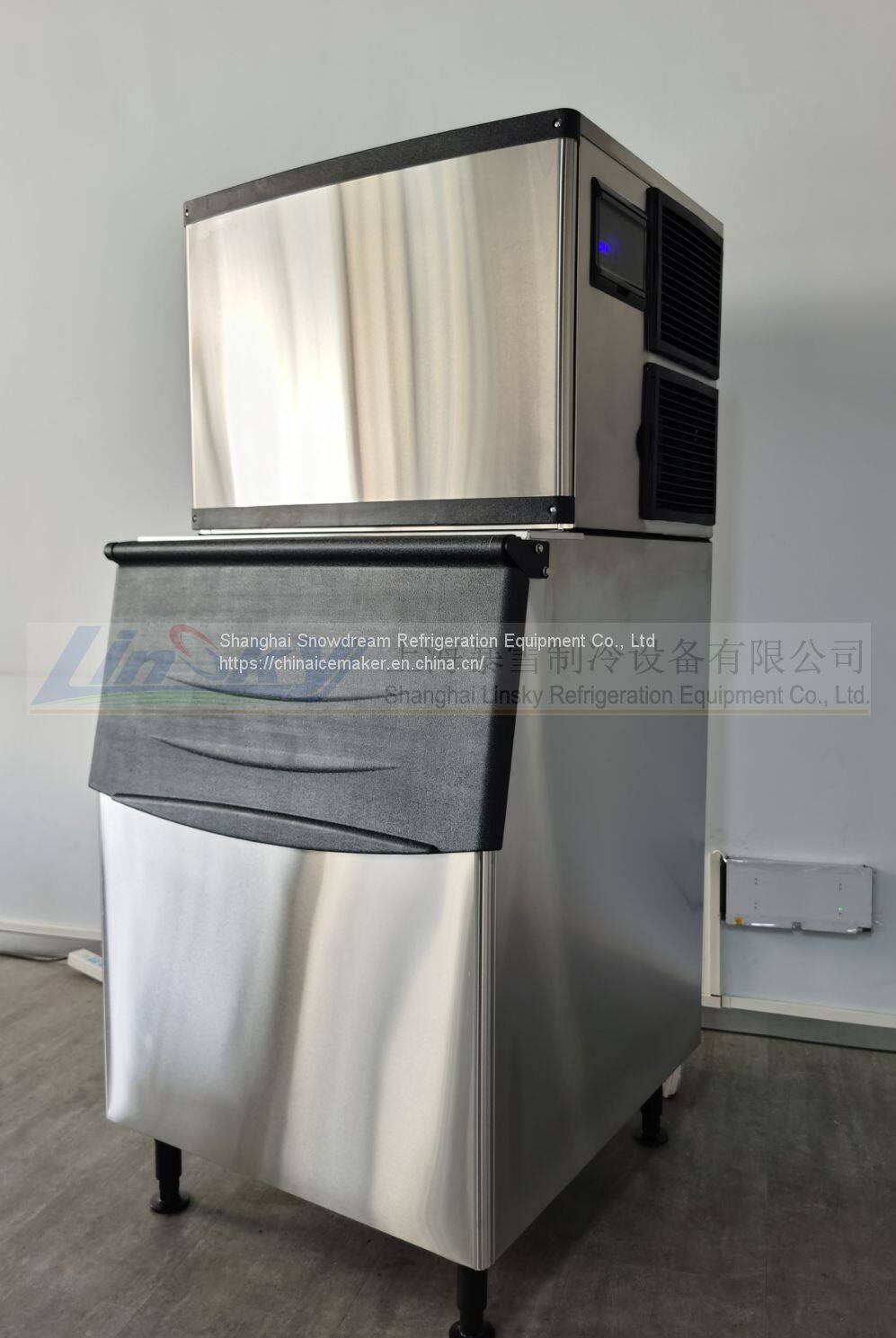 Linsky commercial type cube ice machine is a fully automatic edible cube ice machine with advanced technologies such as automatic water supply, icing and deicing, which adopts touch-screen microcomputer to adjust the ice thickness, automatic shutdown when the ice is full, regular automatic cleaning, self-control and adjustment of operating pressure. It completely solves the problems of uneven thickness of ice caused by environmental temperature change and water pressure gap, difficult deicing and manual shutdown when the ice is full.