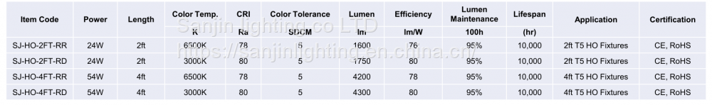 SANJIN double-ended HO T5 straight fluorescent Tube lamp is mainly used for supplementing light in greenhouses and promoting plant growth. It uses high-efficiency tri-phosphor, solid medium-temperature amalgam which brings high luminous flux. T5 54W HO Tube Lamp luminous flux≥ 4200Lm, T5 24W HO luminous flux ≥ 1600Lm; It has low light decay which is≤ 8 in 2000 hours and the lifetime is more than 10,000 hours.