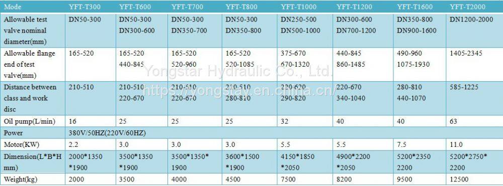 1. YFT-T series hydraulic butterfly valve test bench is suitable for the test of flange butterfly valves,wafer check valves and knife gate valves.