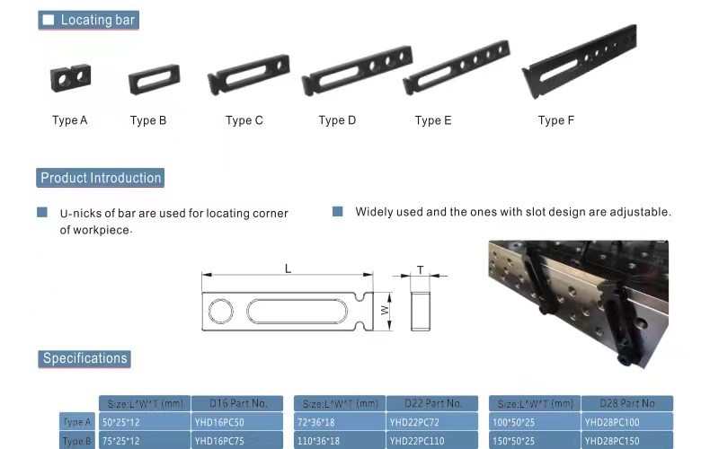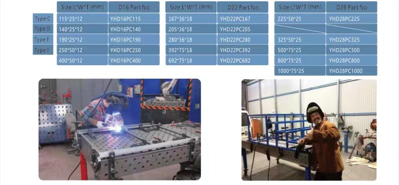 There are 3 designs of7 types:Hole/Slot、Hole/Hole、Slot/Slot and they are are widely used. The ones with Slot design are adjustable and can extend and enlarge tables. With multi-functions and reusability, it makes your welding, machining, assembling and inspection works get higher productivity, better work quality,reduce your project investment cost, and shorten lead time. One set welding table and clamping accessories can match freely to meet the demands of workings for all welders and give you flexibility to adapt to each different project.