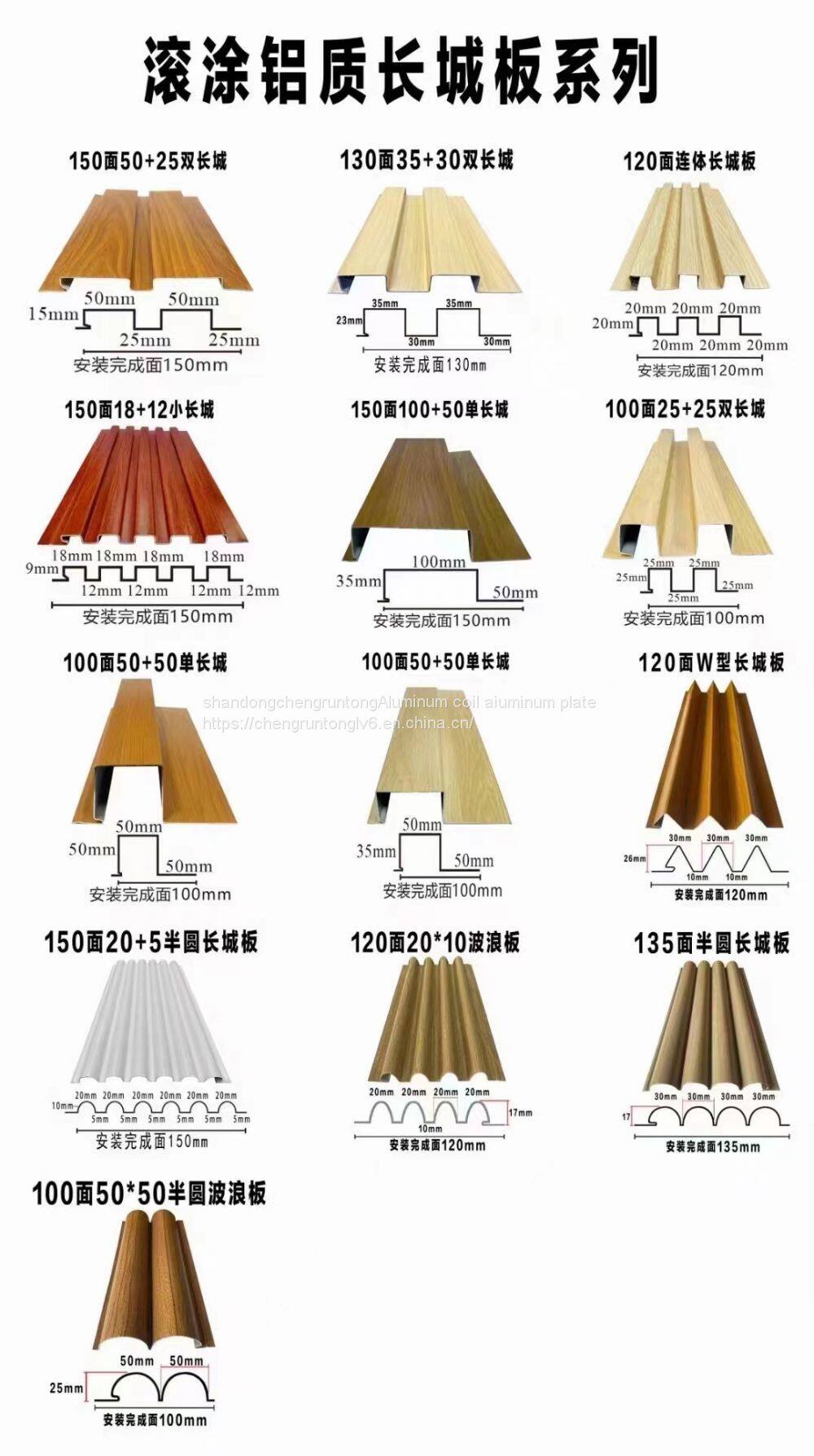 Specifications of Great Wall plate (unit mm) Common thickness: 0.6, 1.5, 2.0, 2.5, 3.0mm. Surface form: punching, concave and convex. Board width: 110/140/150/200. Surface treatment: powder spraying, heat transfer wood grain, fluorocarbon, etc