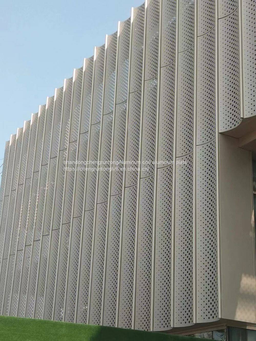 Aluminum veneer, curtain wall aluminum veneer is 3003 aluminum alloy for the plate, according to customer requirements design drawings, after cutting, CNC punching carving, bending, rolling arc, welding, grinding and other production technology processing molding, the surface of fluorocarbon spraying or polychrome powder spraying, wood grain thermal transfer and other processing methods into finished products, after inspection, packaging and shipment