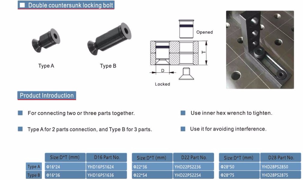 Welding Fixture Double Countersunk Locking Bolt YAHANDA Hot Products User-friendly