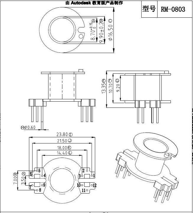 RM8 Bakelite Bobbin, RM8(6+6P) Bobbins, RM8 Vertical Transformer Bobbins. PM9820 Material, Fast Delivery Time.
