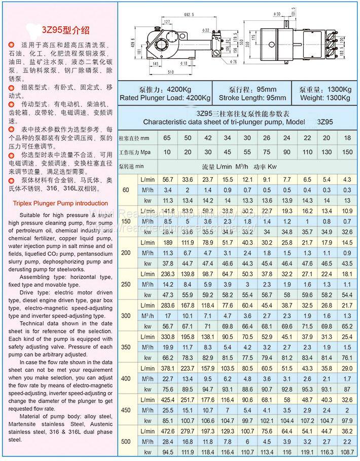 3Z95 Series drain cleaning high pressure cleaner,drain cleaning high pressure water jet cleaner,drain cleaning high pressure water jet blaster, high pressure cleaning machine, suitable for the pressure test pump, drain cleaning pump, metering pump, process pump, medicine-adding pump, hydraulic pump, oil transfer pump, liquid CO2 pump,etc.