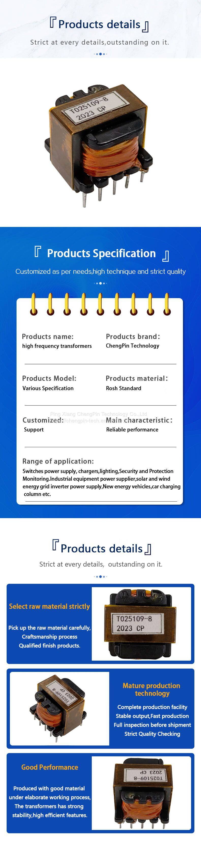 EI and EE type high transformers spreadly used on different industry, high working frequency and wide range of working voltage,output power is strong, and stable heat performance.