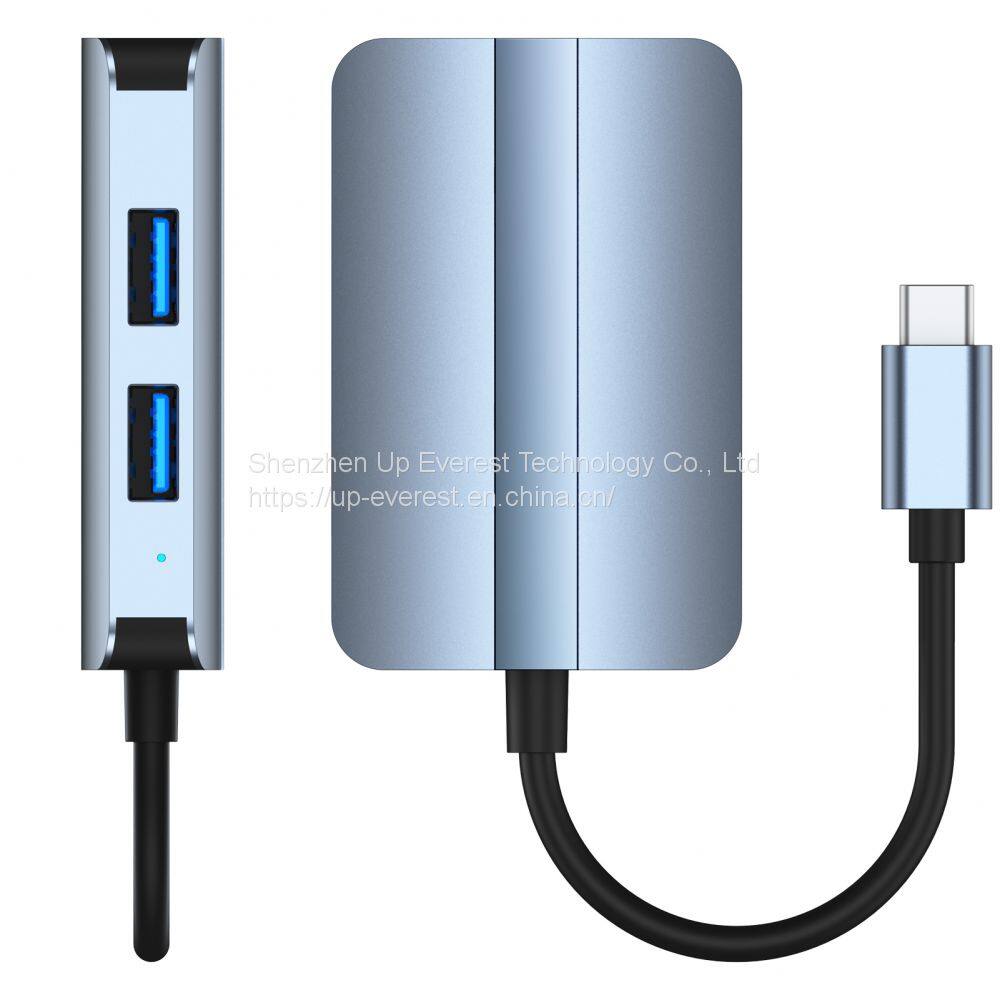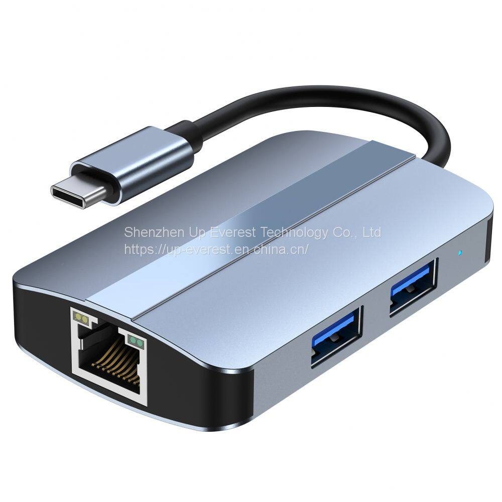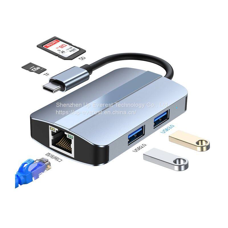 RJ45 USB 3.0 USB2.0 Aluminum alloy USB Hub With micro SD*1+SD*1