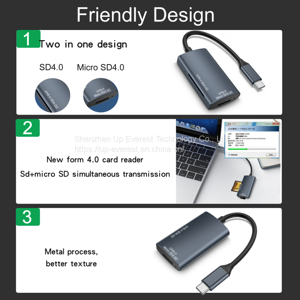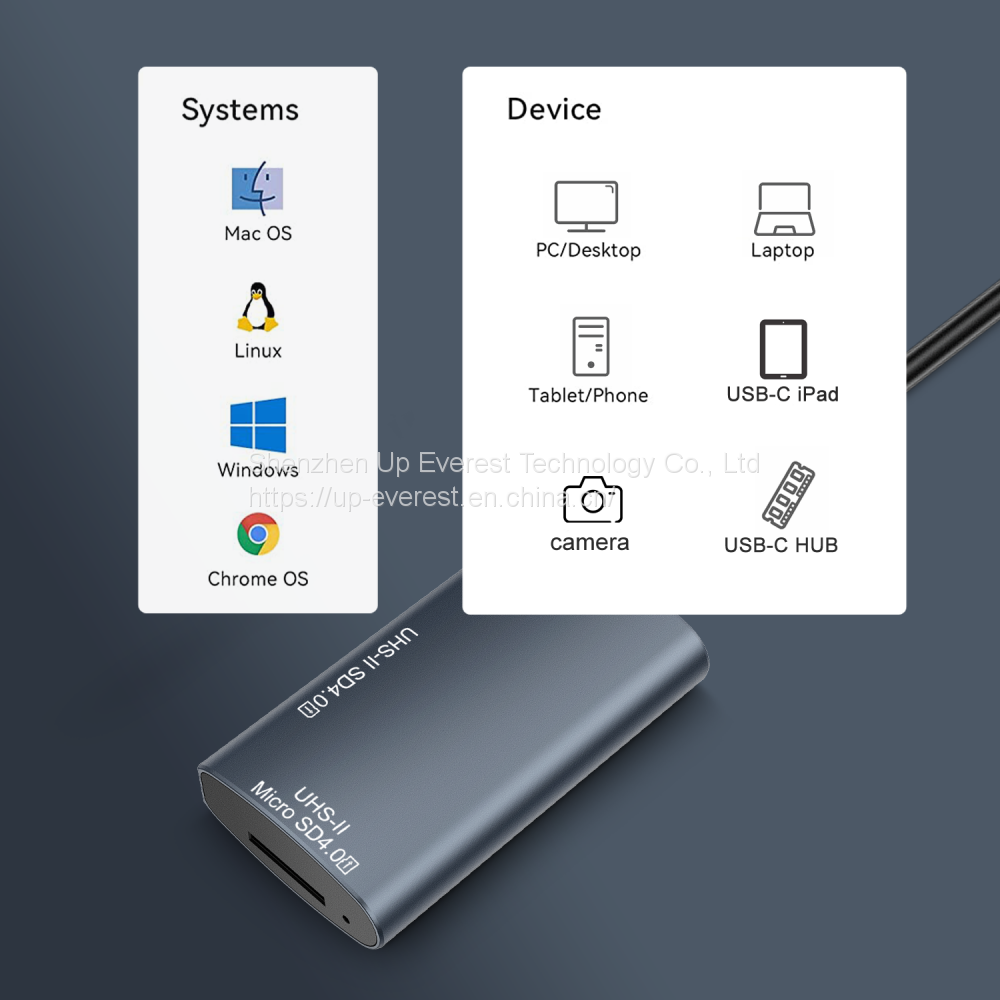 Aluminum Alloy UHS-||SD 4.0+ UHS-|| Micro SD 4.0 Interface TYPE-C 3.1 Card Reader