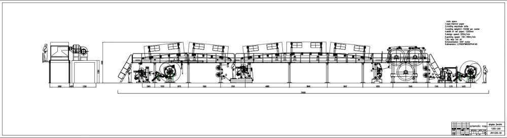 The double workstation shaft-type unwinding →the double roller feeding device →air knife coating →hot air circulation→back coating →hot air circulation→3 cylinders finishing → horizontal type winding