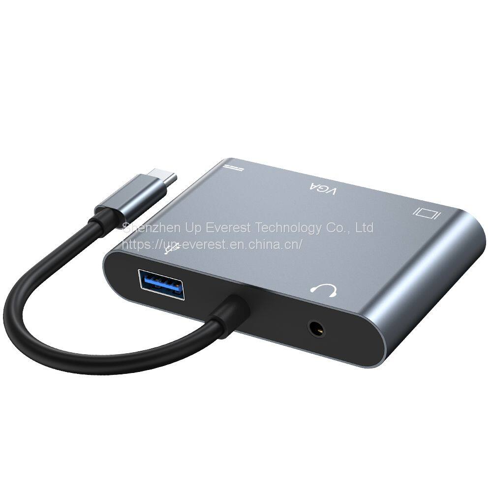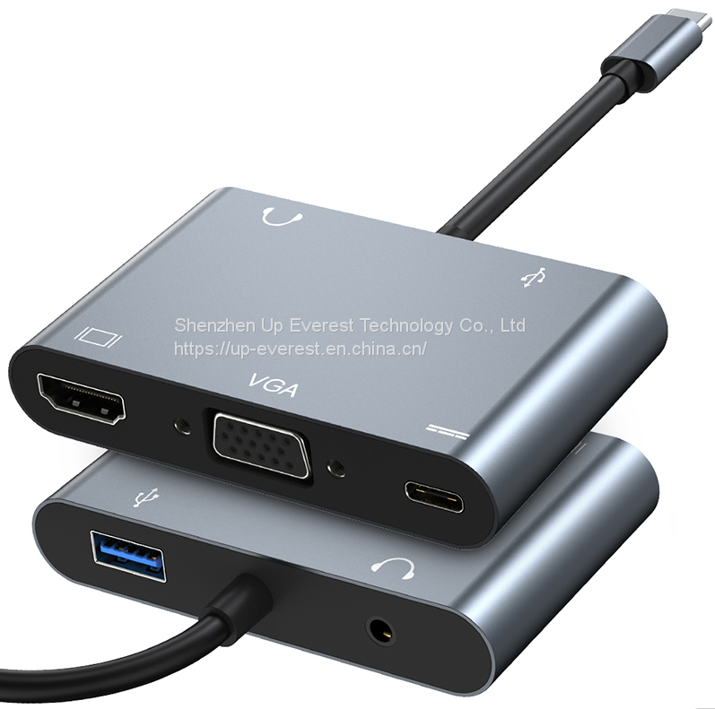 Aluminum Alloy 5 in 1 USB Hub HDMI+USB 3.0*1+VGA+AV+PD