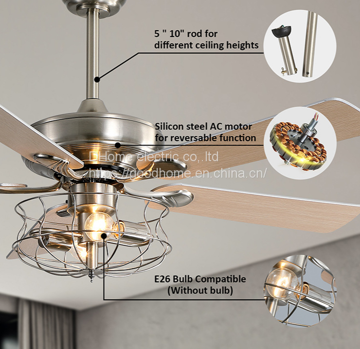 52 Inch Pull Rope Restaurant Fan Light/ceiling Fan Light/retro Unlit Ceiling FanNegotiableMOQ: 2000 Pieces