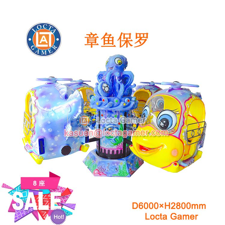 Guangdong Zhongshan Tai Le Tour Indoor and Outdoor Small and Medium-sized Playground Game Room Children's Rotating Small Aircraft Octopus Paul Blue Marine Theme Automatic Controlled Aircraft Rotating Lifting