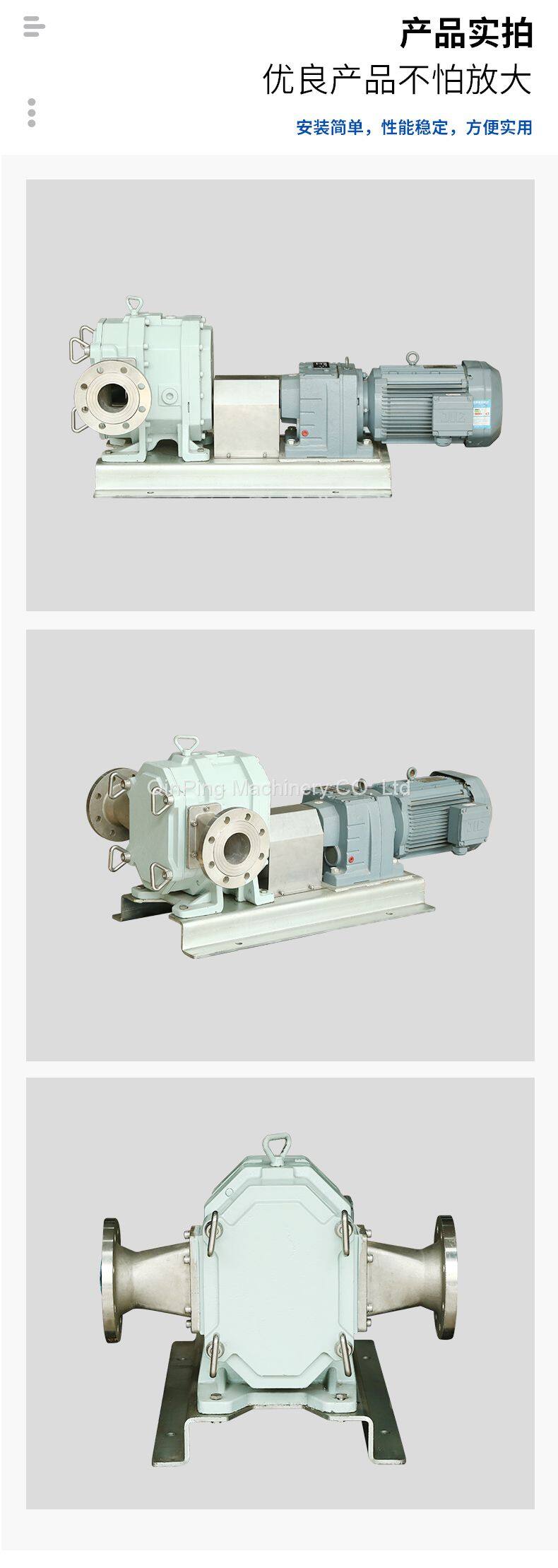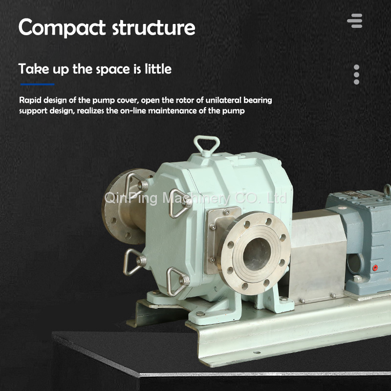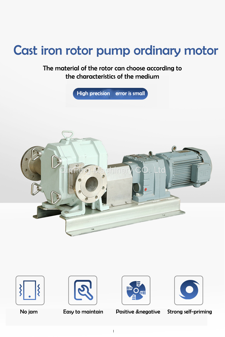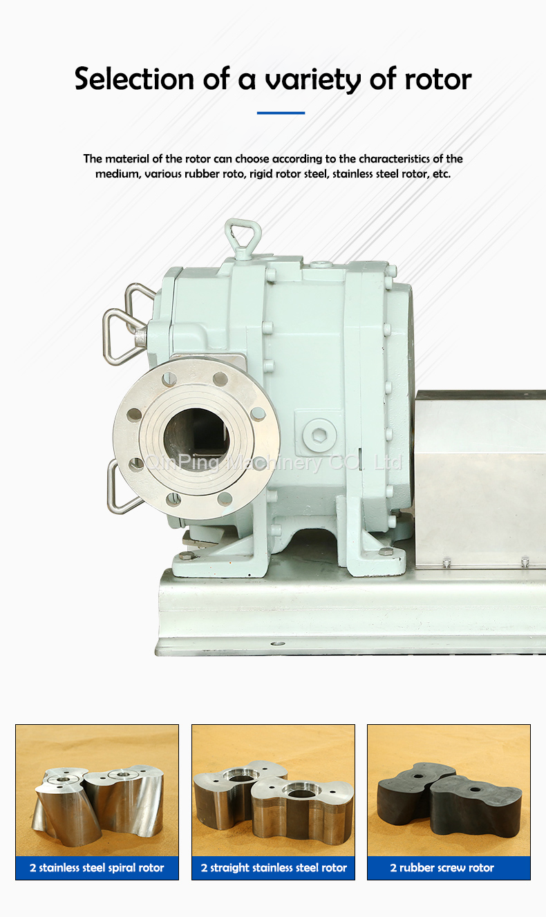Wear-resistant, leak-free, sanitary, corrosion-resistant, positive and negative rotor CAM pumps have opened up their own market competitiveness in various industries. Qinping rotor pump includes a series of 7 models, flow range in 0.2- 1000m³/h, Qinping machinery rotor pump has a variety of materials to choose, so as to ensure that every user to provide an ideal rotor pump. For rotor, shaft seal, flange, O-ring, pump shell and protective lining plate and other parts, Qinping machinery can be selected according to the actual situation. At the same time, we can provide a complete set of units, including CAM pump, base, motor reducer, flange.