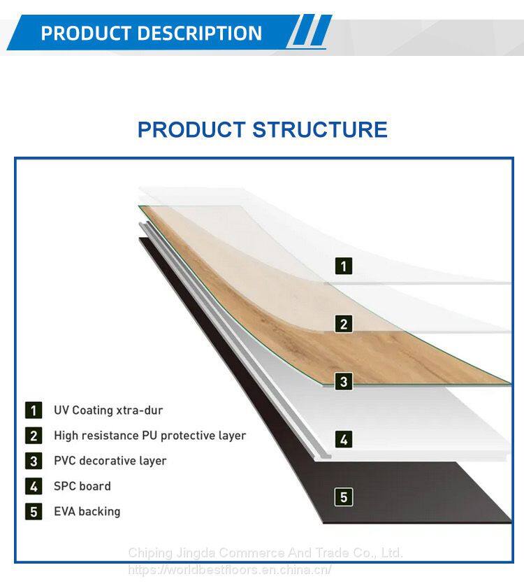 China Jingda Environmentally Friendly 4mm 5mm Waterproof Luxury Spc Flooring Floor for Interior Decoration