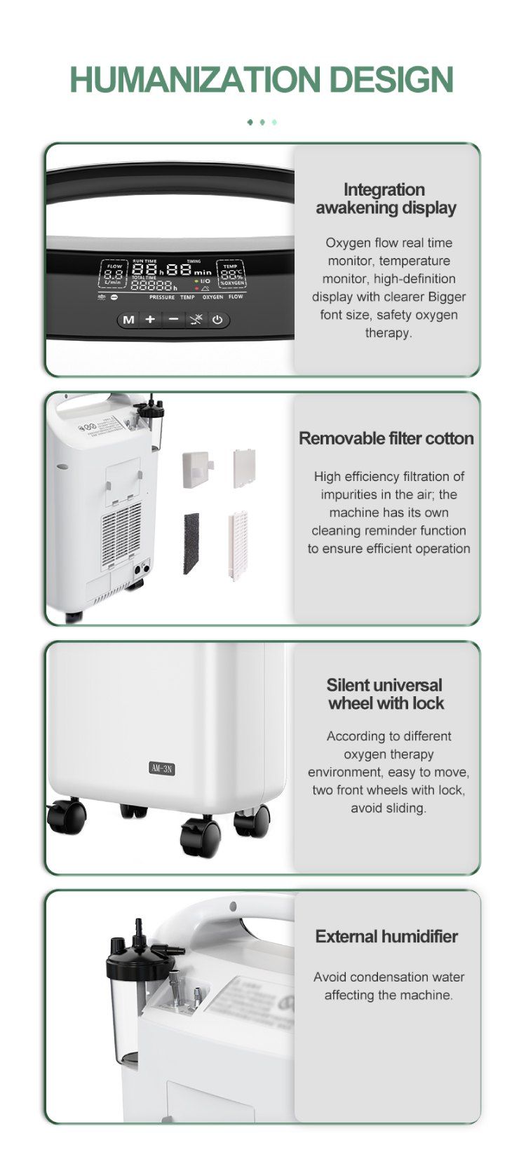 As expert on COPD, new AM-3-N Oxygen Concentrator uses PSA Gas Separation Technology and France imported CECA molecular sieve. It is very popular with the White Collar, the Pregnant, the students, the elder and the patients. You may find our oxygen concentrators in hospital, clinics, nursing home, beauty salon and other places.
