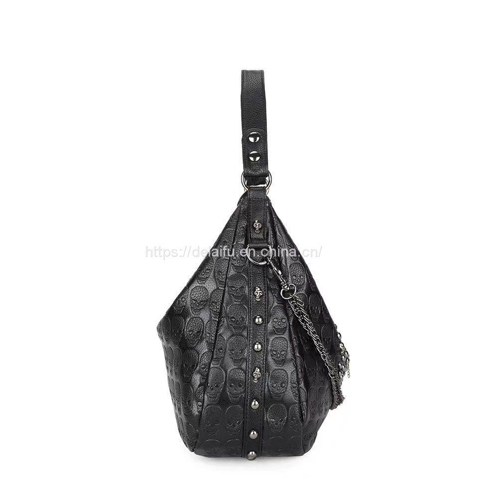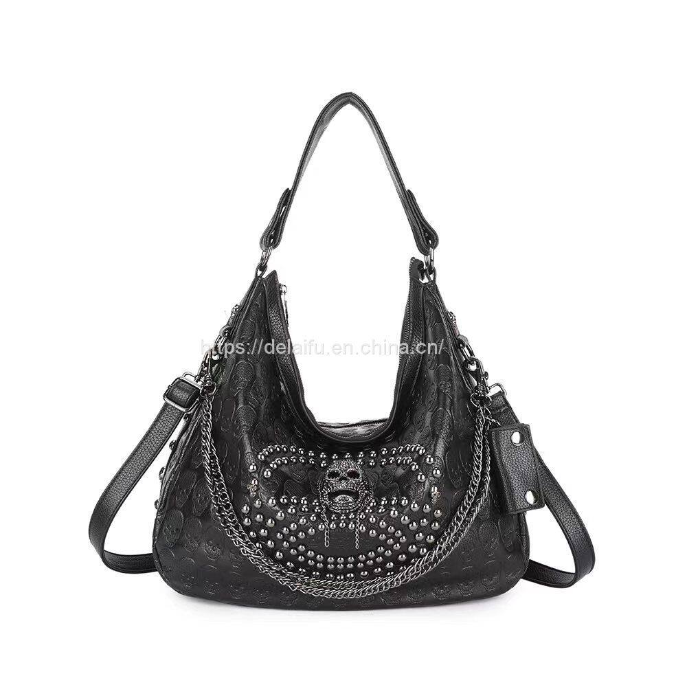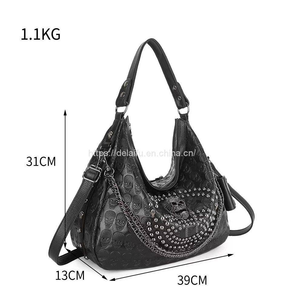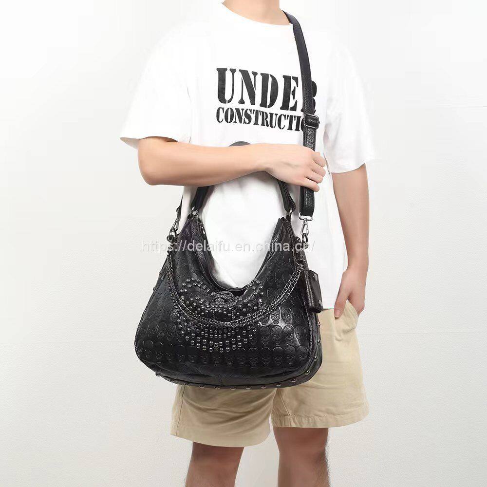 Punk Style Unisex Leather Handbag Large Capacity Portable Rivet Bag