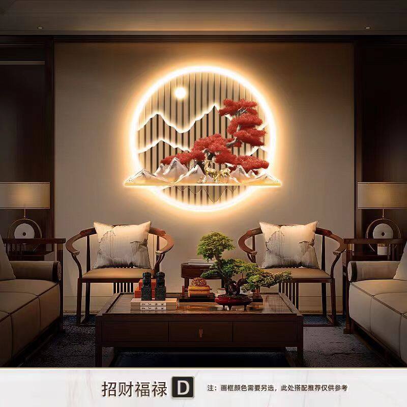 The living room has a backing sofa and a picture of nine fishes16