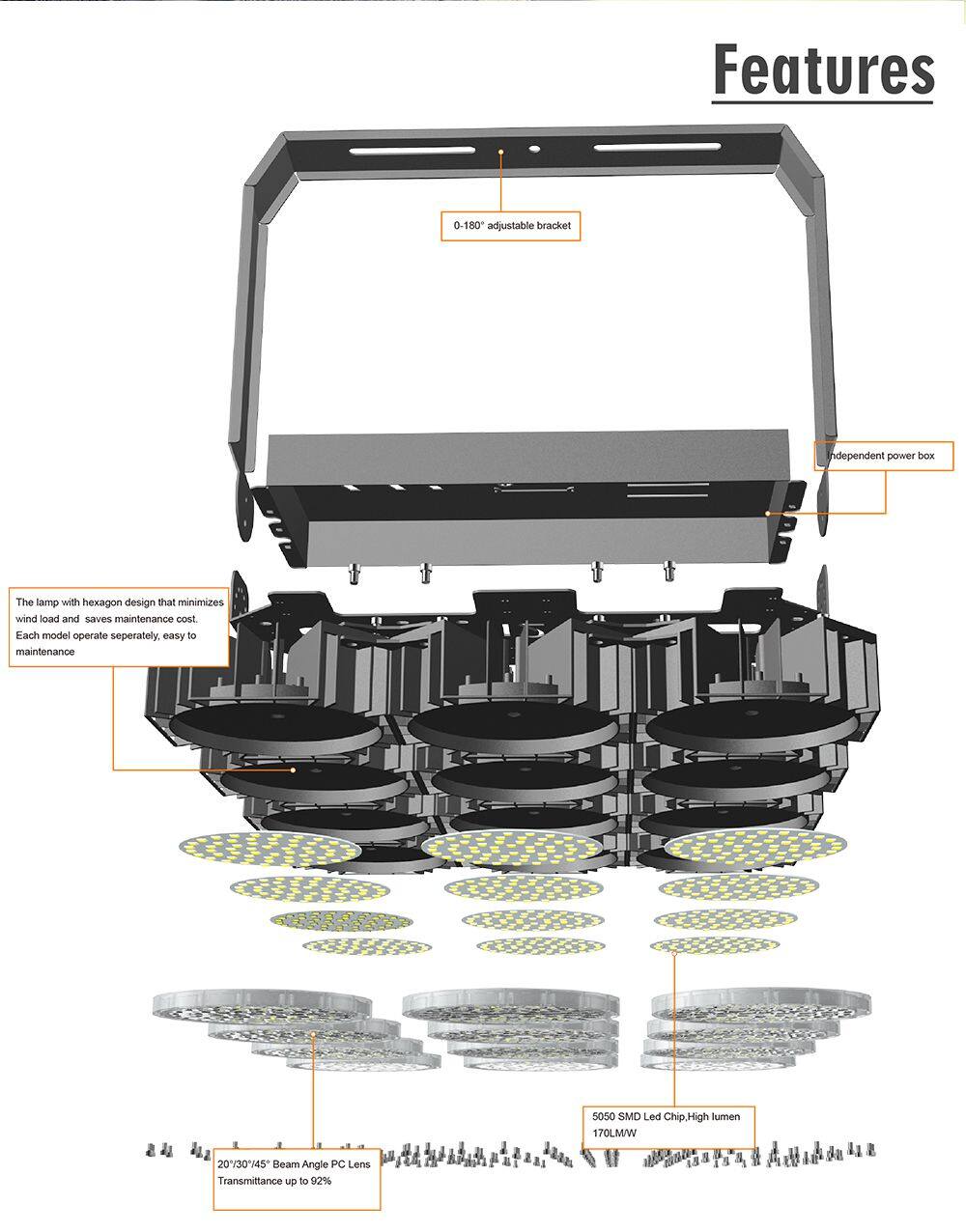 Hishine Hi-robot High Luminous 120w 240w 320w 720w 960w 1300w 160LM/W Led Lighting or Lamp for Sport Outdoors