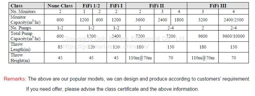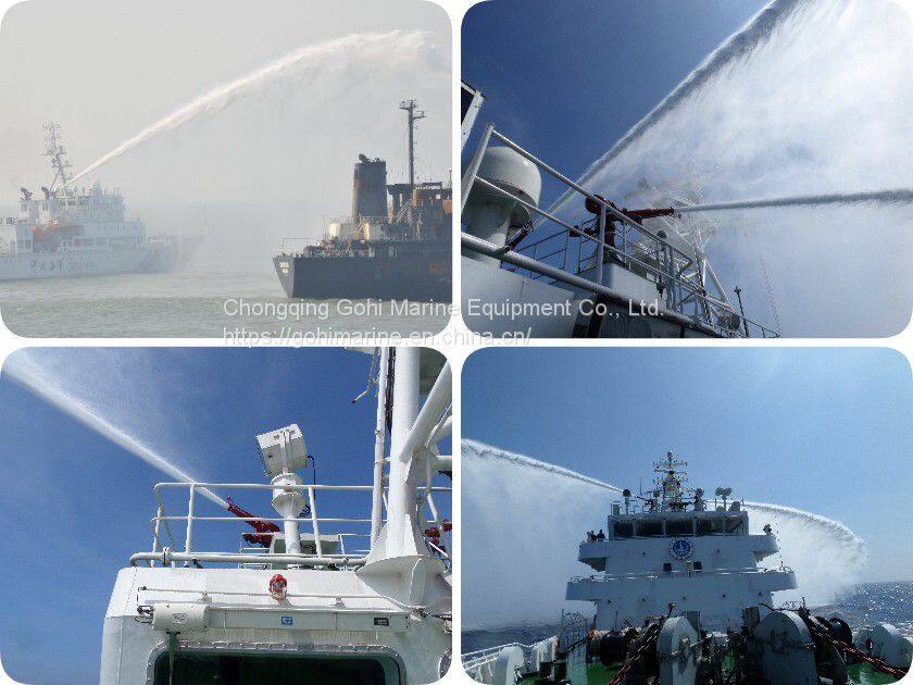 FIFI-1 external fire fighting system is FIFI class 1, the total flow rate must be not less than 2400m3/h(10560GPM). It is usually includes 2*1200m3/h(5280gpm) fire water monitors, 1*2400m3/h(10560gpm) fire pump or 2*1200m3/h(5280gpm) fire pump, 4 hose connections on each side of vessel. And the throw range of the water monitor must be not less than 120meters, the throw height of the fire fighting water monitor must be not less than 45meters. For some additional requirements, it can be coupled with foam proportioner for special fires, fixed water spray systems for protection the vessel hull etc.