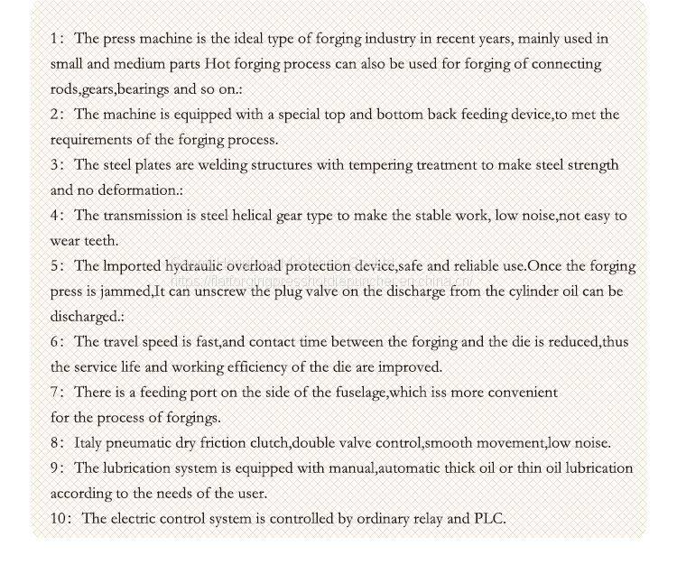 The machine is equipped with special top and bottom material return device,meeting the requirements of forging process.