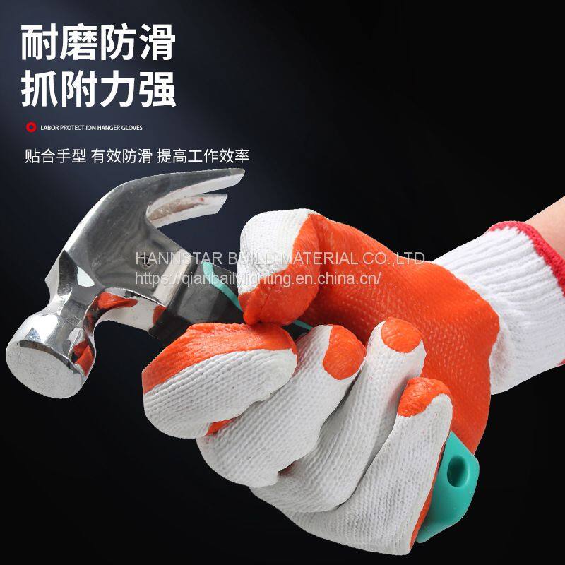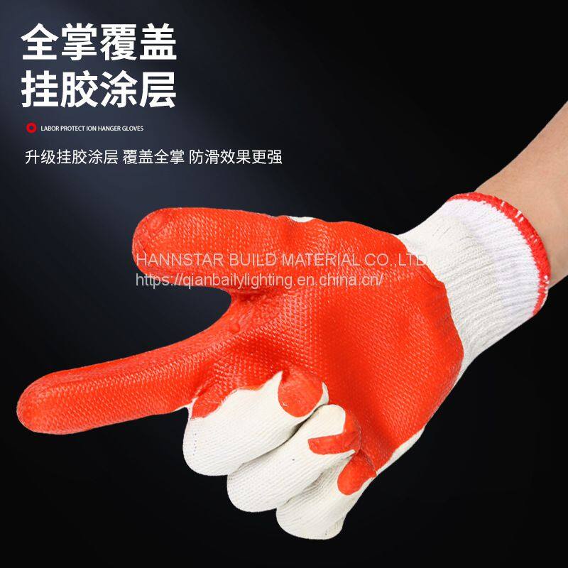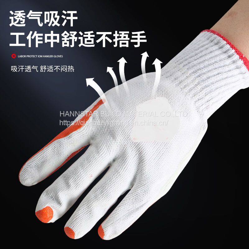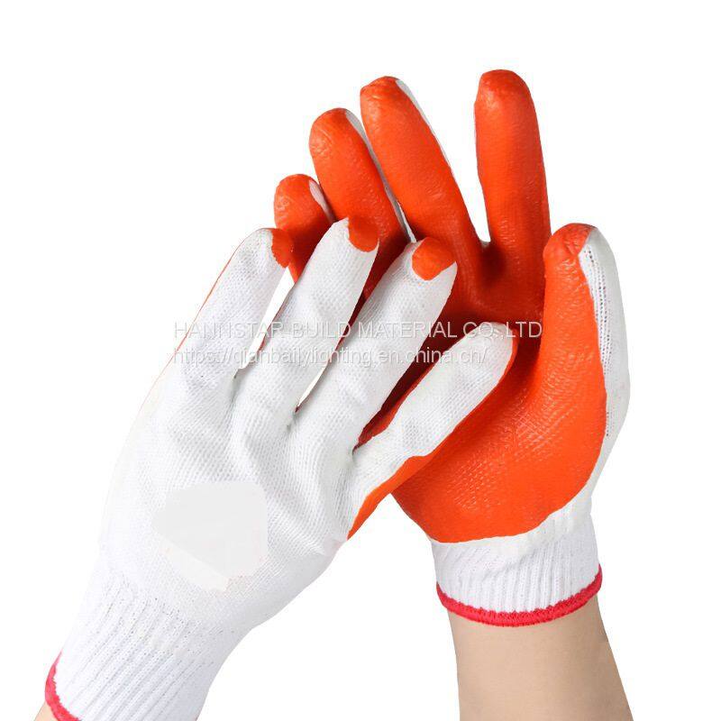 White Cotton Working Gloves With Orange Coated Rubber Hand Safety Gloves