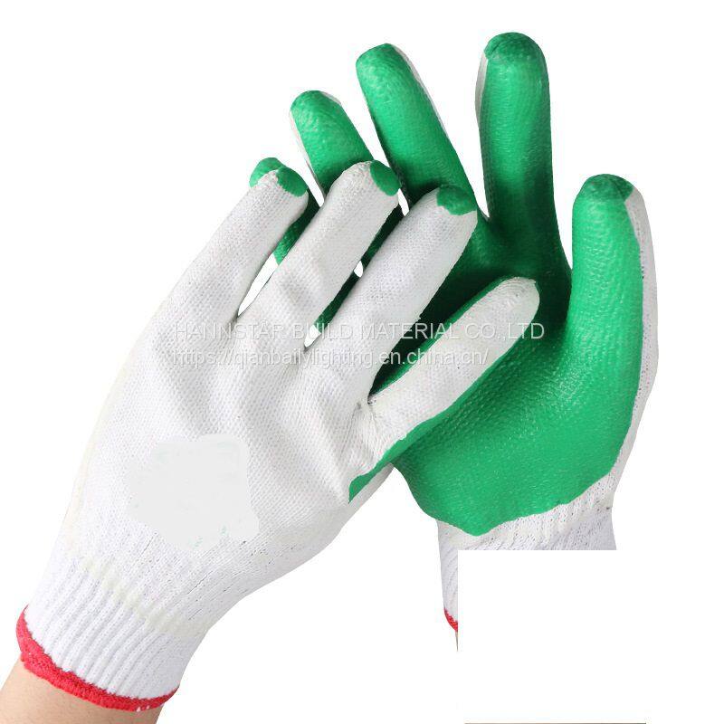 White Cotton Working Gloves With Green Coated Rubber Hand Safety Gloves