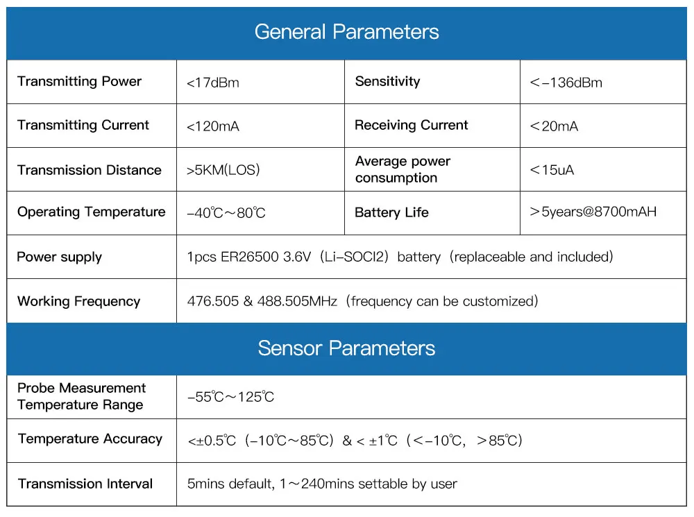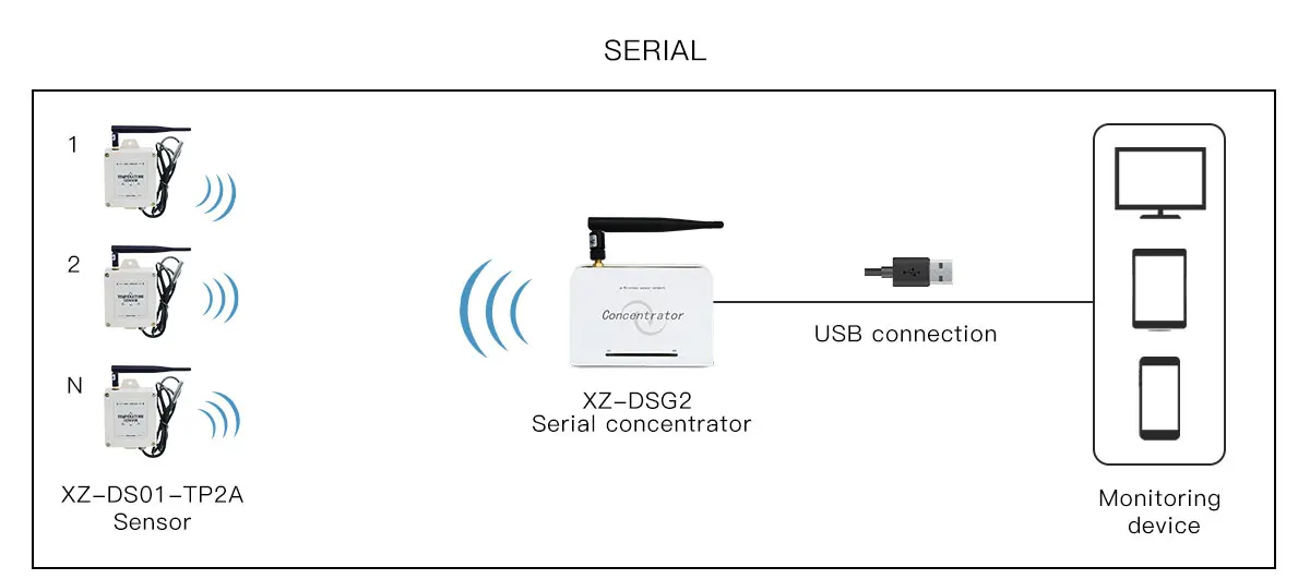 2.One receiver/concentrator/gateway can work with more than 100pcs sensors.