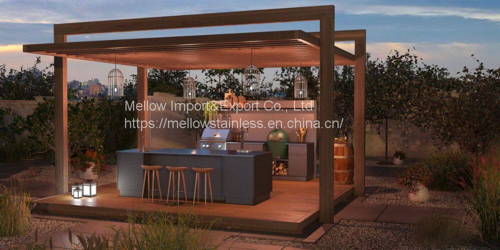 - Customized Luxury Outdoor Stainless Steel Kitchen Cabinets With Gas Stove and Bbq Grill