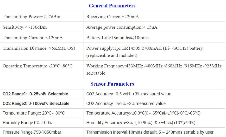 400-45000ppm Range Lora Wireless Carbon Dioxide SensorUS$ 120 - 136MOQ: 1 Piece