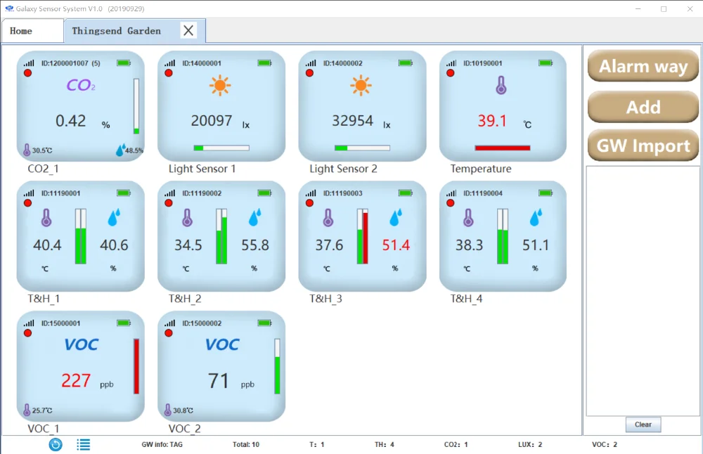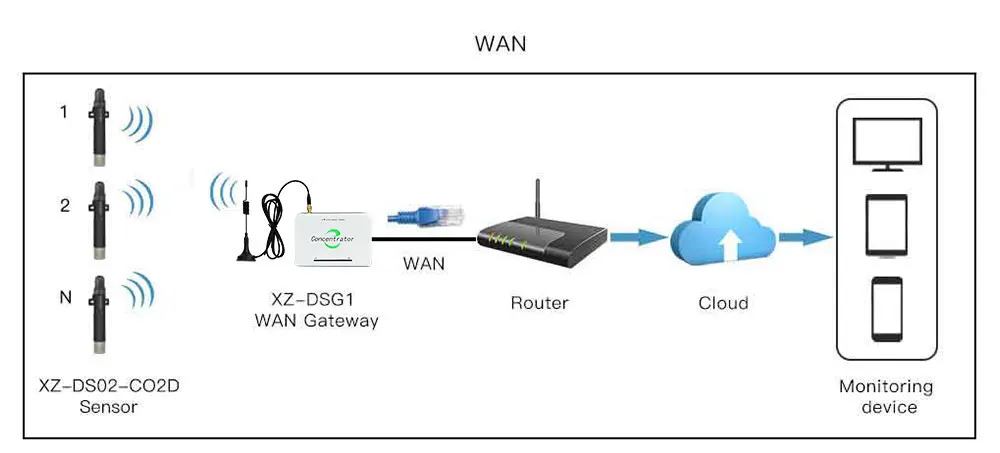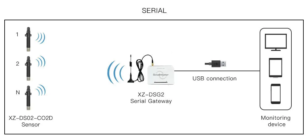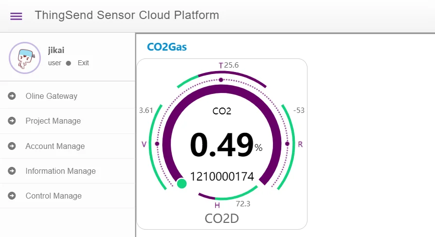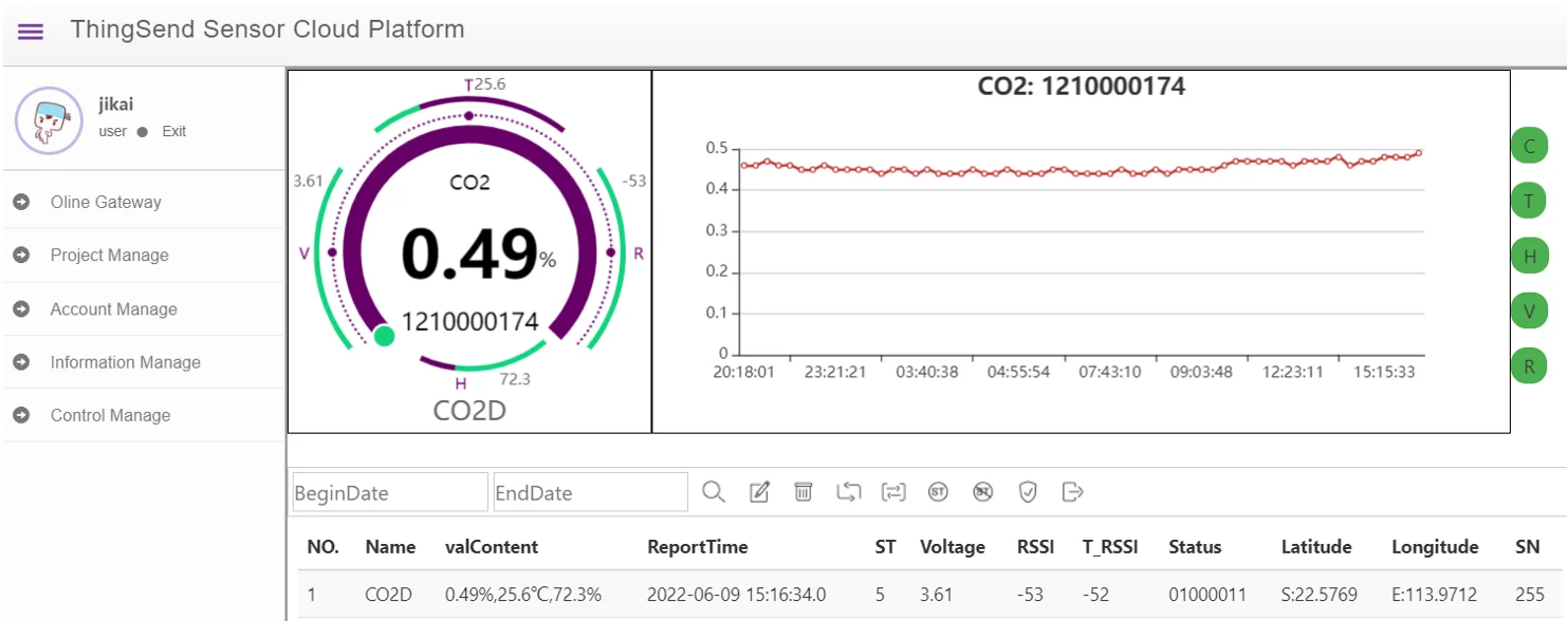 Example:GW_ID:12345,TYPE:CO2,ID:1,STAT:11000000,CO2: 0.25%, T:14.5℃,H:36.3%, ST:5M,