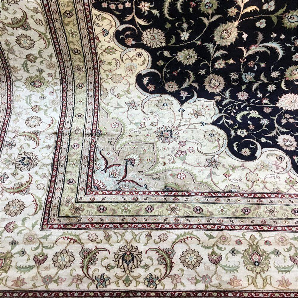 9x12ft Dark Mblue Handmade Silk Persian Carpet for Sitting Room and Meeting Room