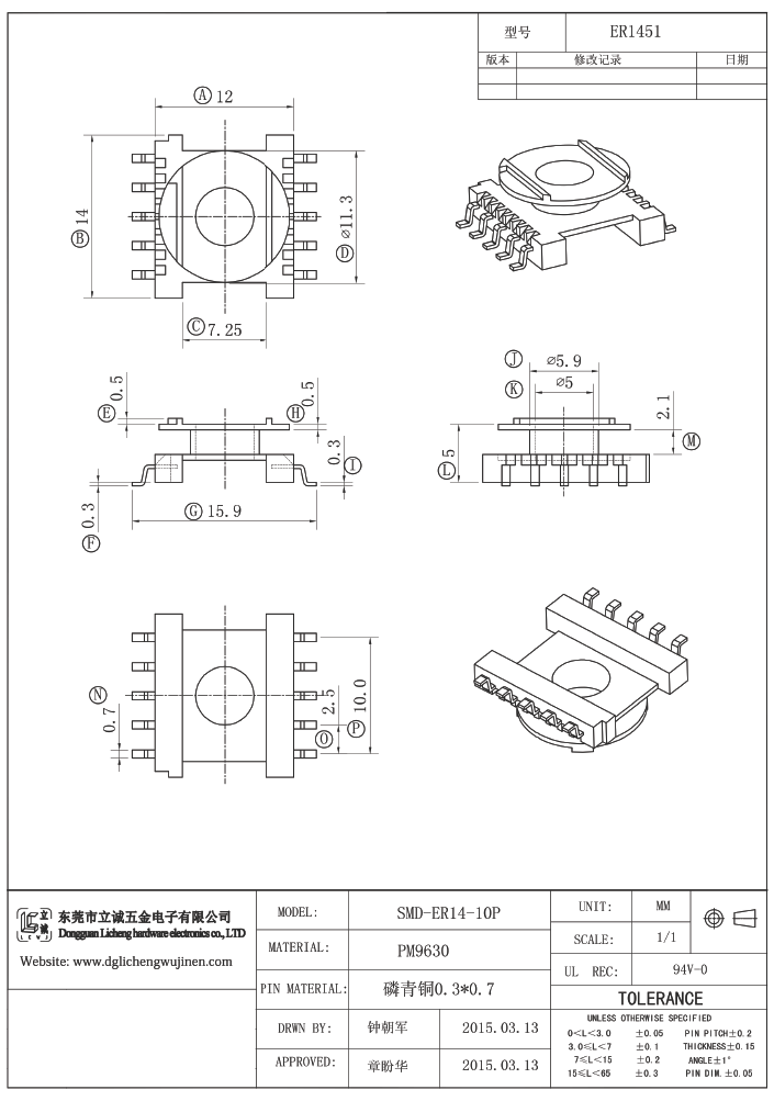 ER14.5 Transformer Bobbins ER14.5 SMD (5+5P)Bobbins,ER14.5 Transformer Accessories,PM9630 Material With Good High Temperature Resistance.US$ 0.06 - 0.07MOQ: 5000 Pieces