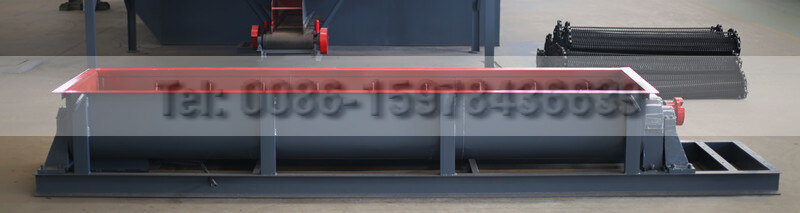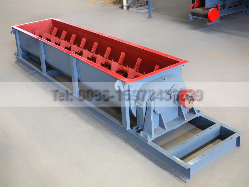 Double shafts horizontal mixer is suitable for continuous mixing of mixed fertilizer powder,usually used after automatic batching equipment.T he working principle is that the materials go into the mixing tank,then through a pair of screw shafts with opposite rotating,they are stirred uniform,and enter the next granulation process.