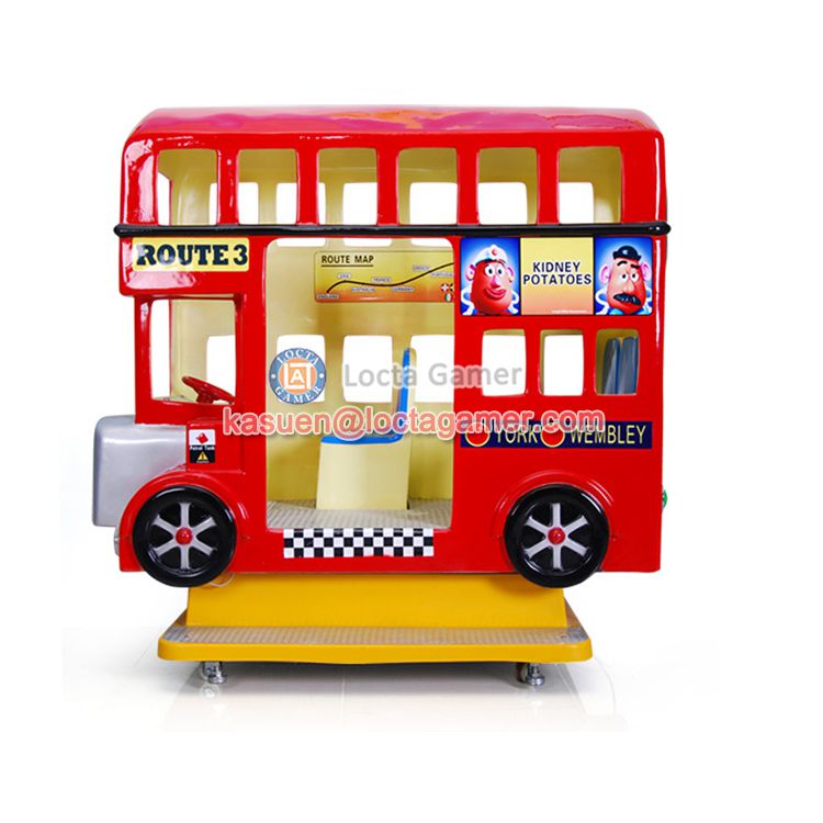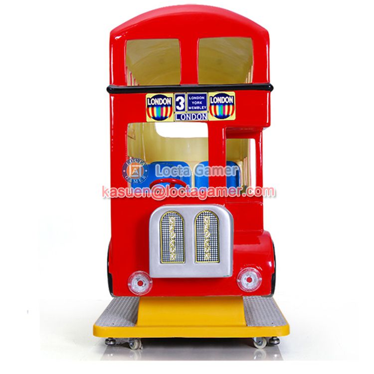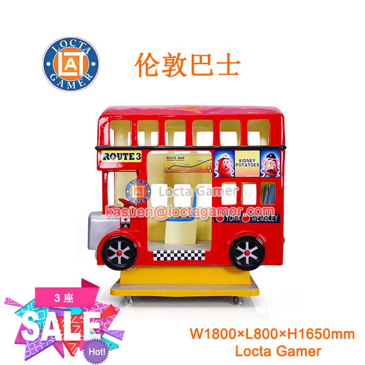 Guangdong Zhongshan Tai Le Play Children's Small Swing Machine Rocking Car Music Coin London Bus 3 Seat With Steering Wheel Fiberglass (LT-KD08)