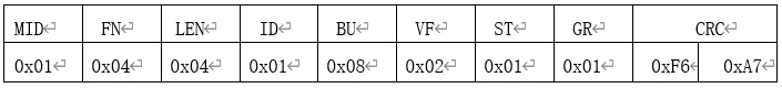 Return: 01 04 05 01 08 02 01 01 F6 A7